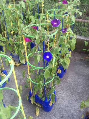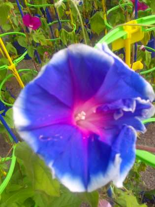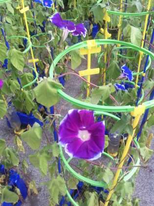 1年生が大切に育てているアサガオが立派な花をつけています。