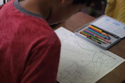 今日は大きな白地図を一人一枚つかって、色々と書き込みをしました。