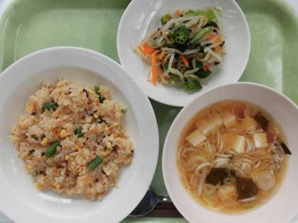 【献立】そぼろごはん・オクラともやしのひたし・みそ汁・牛乳
