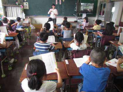 1年生が国語の教科書に載っている詩を読み、言葉さがしをしました。