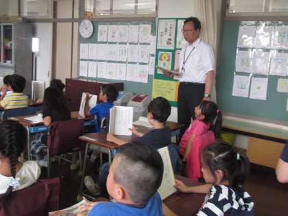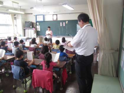 学習の様子を見に来ていた校長先生も、1年生の一生懸命さに感心。