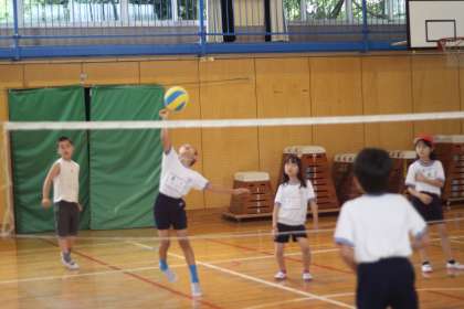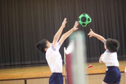 4年生は体育の時間にバレーボール型ゲームをしました。