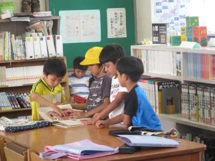 1年生が1学期最後の図書の時間を過ごしています。