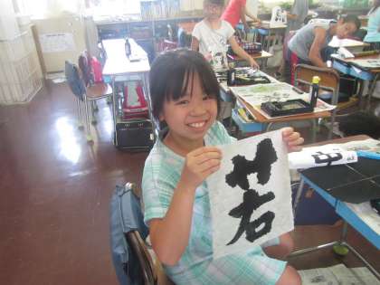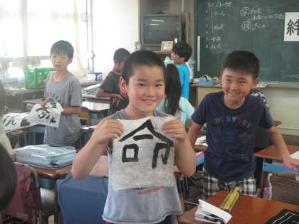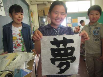 みんな思い思いの漢字を練習し、最後の手すき和紙に書いていました。