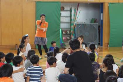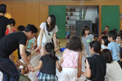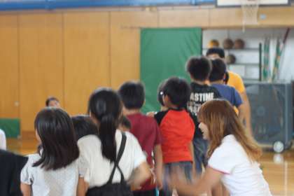 放課後の体育館で、学校運営委員会による「楽しもう!世界のことば」が行われました。