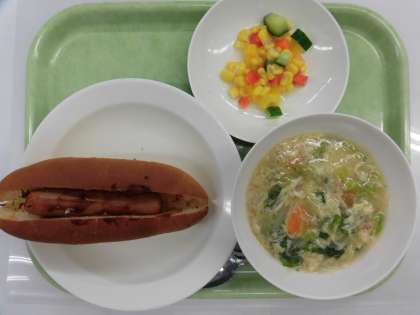 【献立】ウィンナーサンド・トロピカルサラダ・レタススープ・牛乳
