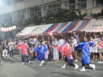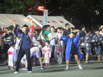 やぐらの周りで元気いっぱいの踊りを披露しました。