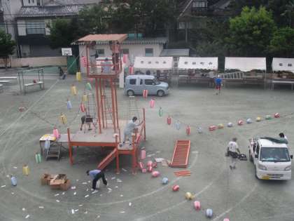 今朝から地域の方やPTAの方が見えて、昨日の盆踊り大会の後片付けをしてくださいました。