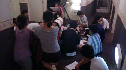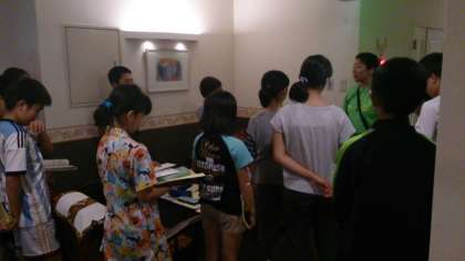 先生からの指導を通して、今日の反省点を確認します。班長は部屋に戻り、班の仲間にミーティングの内容を伝え、明日に生かします。