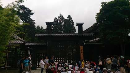 順調に進み、予定より早く日光江戸村に到着しました。関所(入場口)前で待機しています。