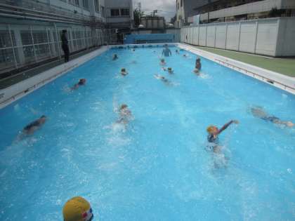 3、4年生は泳ぎ込みをしました。