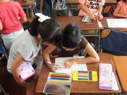 友達との助け合いも、教室のいたるところで見られます。