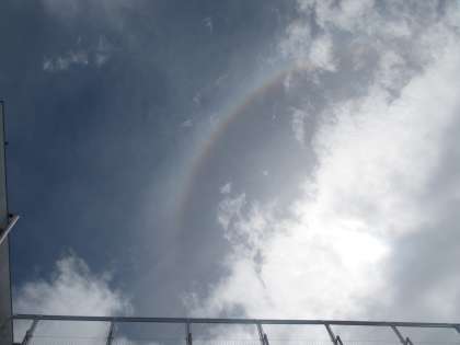 元気いっぱいの水泳に誘われて、空には虹がかかっていました。