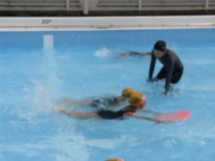 夏の日差しの中、子どもたちはみんな気持ちよさそうに水に親しんでいます。