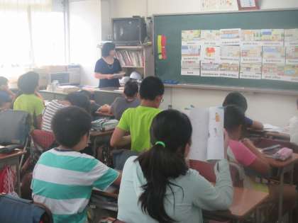 楽しい講師の先生をお招きして、今日はお店の名前を表現する学習をしました。