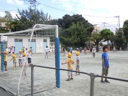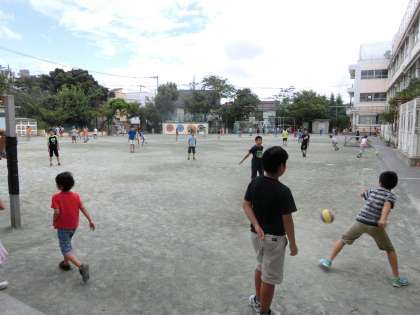 校庭では、たくさんの児童がボール遊びや、鬼ごっこ、一輪車などを楽しんでいました。