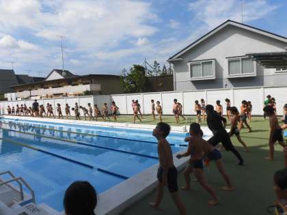 準備運動とシャワー、水慣れを済ませると、いよいよ個人競技の開始です。
