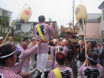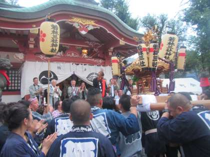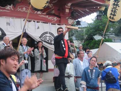 町内を練り歩いたお神輿が若林稲荷の境内に帰ってきました。