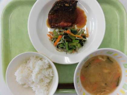 【献立】ごはん・さばの煮おろし・おひたし・みそ汁・牛乳