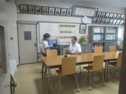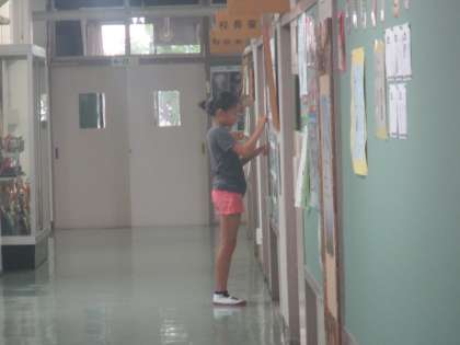 これは若小名物の日本語暗唱校長検定の順番待ちをしているところです。