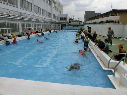 長袖と長ズボンを着用して、プールの中で歩いたり、泳いだりしました。貴重な体験ができたようです。準備など、ご協力くださった保護者の皆様、ありがとうございました。