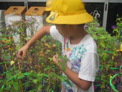 1年生が大切に育ててきたアサガオが実りの時期を迎えています。