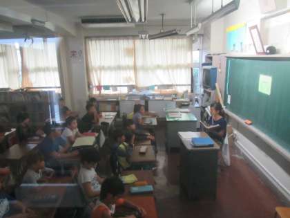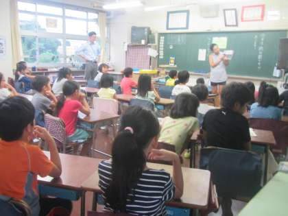 3年生は担任の先生がちょっと怖い話を聞かせてくれています。