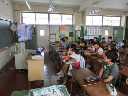 今年の夏は台風が多く発生しています。この時期、5年生の理科では「台風の接近」について学習します。身近なテーマということもあり、台風の仕組みを紹介した映像に興味津々の子どもたちでした。