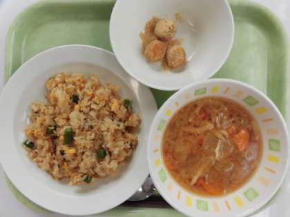 【献立】そぼろごはん・みそ汁・月見だんご・牛乳
