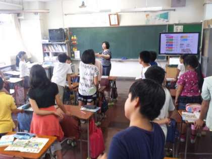 6年生が外国語活動の「英語で道案内」に取り組んでいます。