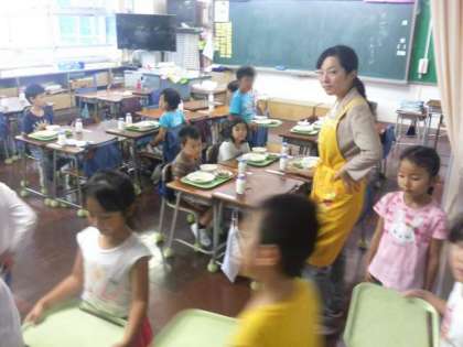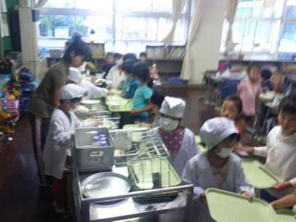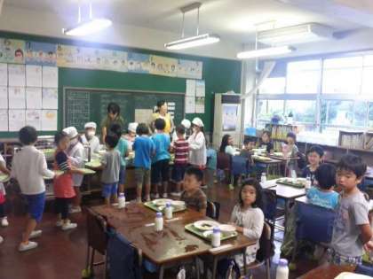 エプロンをした先生と29人でつくる、素敵なレストランです。