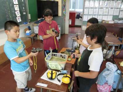 合図係は、5、6年生が徒競走などで使用するスターターピストルに火薬(雷管)をつめる方法を確認しました。