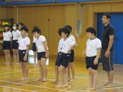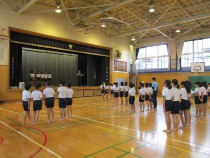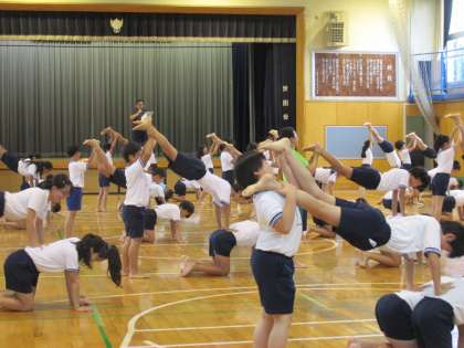 高学年の子たちが運動会に向けて組体操の練習をしています。
