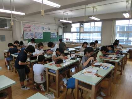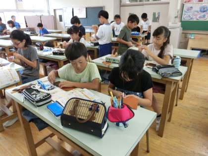 家庭科の時間で小物作りを行いました。ボタンの縫い方が難しかったようです。完成した作品にポケット・ティッシュを入れて、早速活用している児童もいました。自分で作った作品に愛着を持つことができて良かったですね。