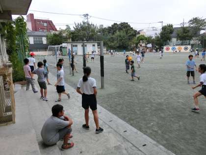 警察役と泥棒役に分かれて、鬼ごっこのような遊びを楽しんでいます。