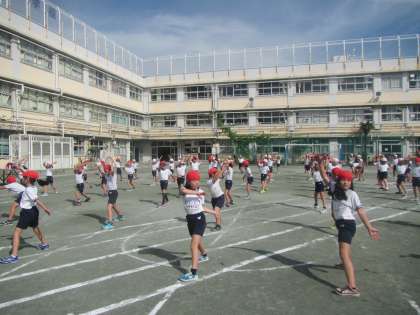 校庭いっぱいに広がった子どもたち。