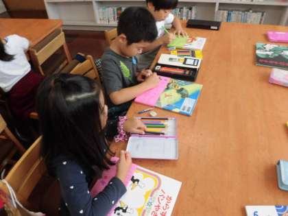 好きな本を選んで、本の紹介やオススメのところを、文章や絵で自由に書いていきます。