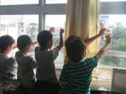 4年生が理科の学習で光電池を使いました。