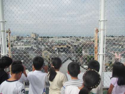最後に屋上から世田谷中学校の屋上にあるソーラーパネルを見学しました。