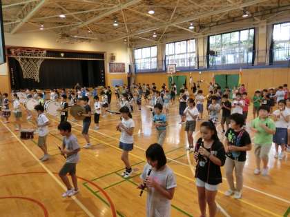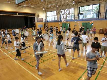 5年生にとっては、初めての練習です。6年生の後について動きを確認したり、担当している楽器を演奏したりしました。みんな、とても上手でした。