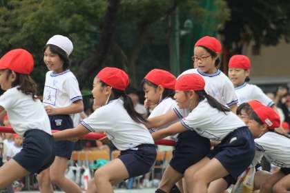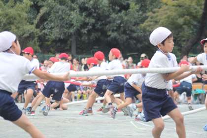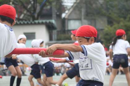 中学年の子たちは今年度から始まった競技「棒引き」に挑戦!