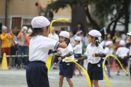 1年生はニンジャリバンバンに合わせてリボンを使った表現です。