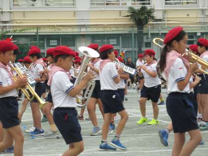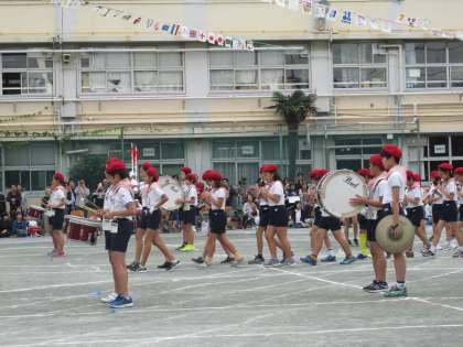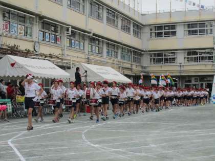 校庭狭しとマーチングを見せる5、6年生たちに大きな拍手が贈られました。