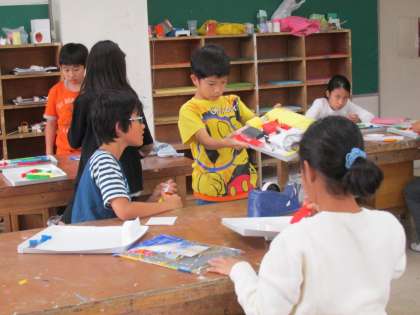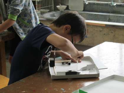 面白い仕掛けを思いつくと、みんなせっせと紙を切って形にしていきます。