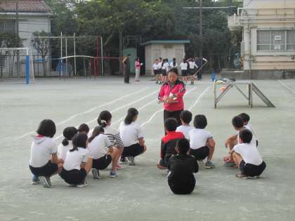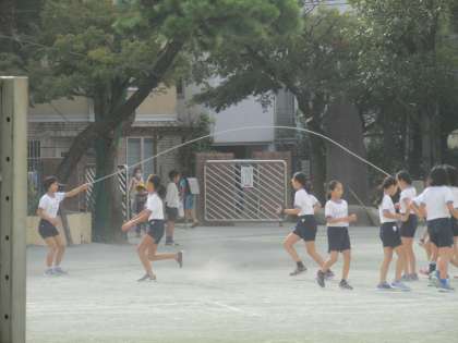 来週水曜日に連合運動会を控えた6年生が朝練習をしています。