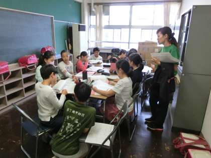 若林小学校には、1年生から6年生までが同じ班になり、一緒に活動する若小タイムという時間があります。6年生の中から選ばれた班長さんが定期的に集まり、自分たちで活動内容を決めています。