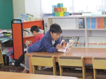 いつも司書さんがいるので若小の図書室はとても使いやすいですね。