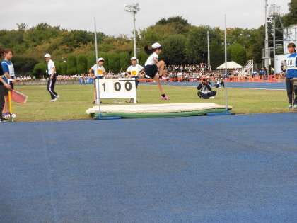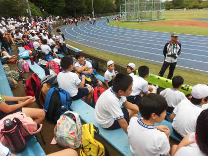 スタンドでは友達の競技に声援を送ります。