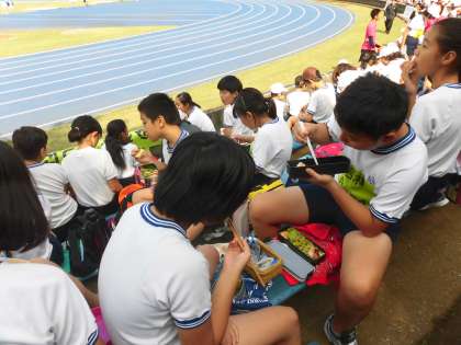 お昼になり、スタンドでおいしくお弁当をいただきました。