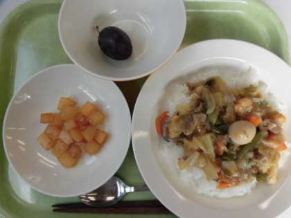 【献立】中華丼・大根の中華味・プルーン・牛乳